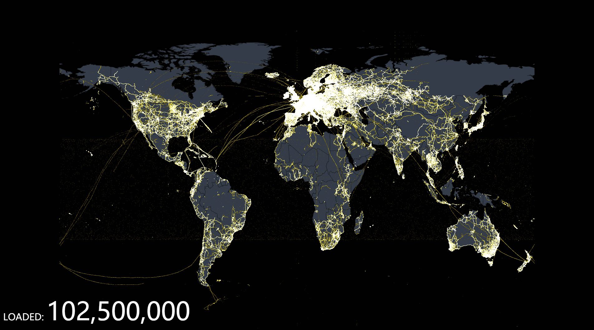 ECharts provides eye-catching effects for the visualization of geographic data such as line data and point data.