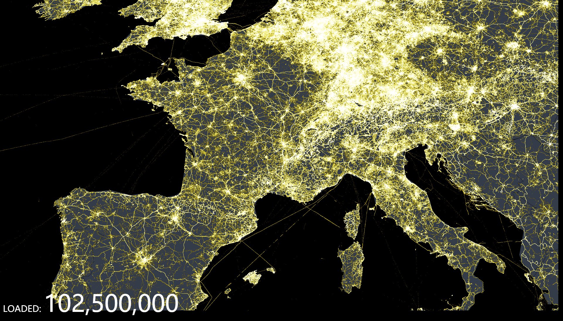 With the help of imcremental rendering technique since v4.0 and optimization of all ascpects, ECharts can display the visualization of tens of millions of data. What's more, interactions like scaling and transforming are fluent all the same.